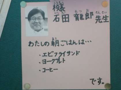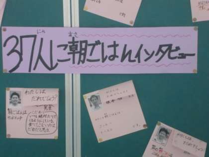 さて保健室前には,児童保健委員会の子どもたちが教職員に「朝ごはんインタビュー」したものを掲示しています。いろいろな朝ごはんがいっぱい!です。12月末まで掲示していますので,学校に来られた時には是非ご覧くださいね。