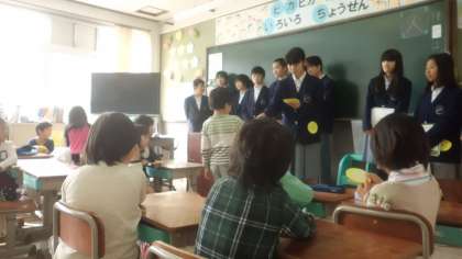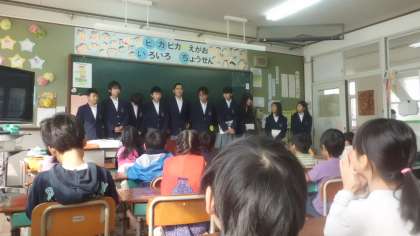 藤森中学校のお兄さん,お姉さんが砂川小学校に来て下さいました。