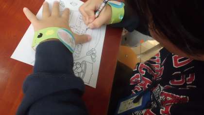 手には,中学生からもらったプレゼントをつけて,1日中嬉しそうに眺めていました。