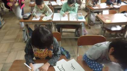 書写の時間に,「お正月」という字を書きました。「正」の字の4画目を忘れないように。「月」の字のはらいやはねを忘れないように。丁寧に大きく書いていました。