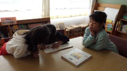 図書室へ行って本を読むのが大好きな子どもたち。図書へ行く日は,「いつ行くの?早く行きたいな!」と朝から聞いてきます。図書室では,使い方の約束を守って,友達と仲良く本を読んでいます。これからますます寒くなってくるので,本に親しむのもいいですね。