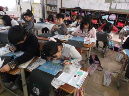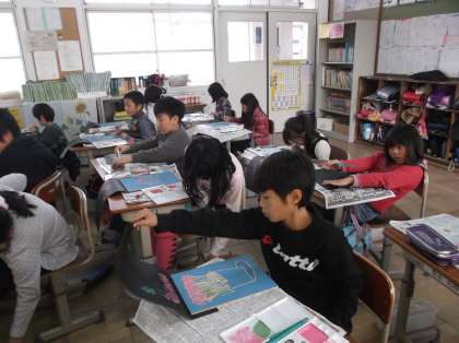 色を工夫しながら,ていねいにていねいに刷っています。