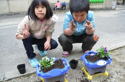 しばらく空いていた植木鉢にチューリップの球根とヴィオラの花を植えました。