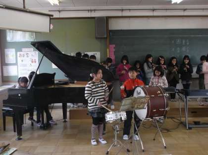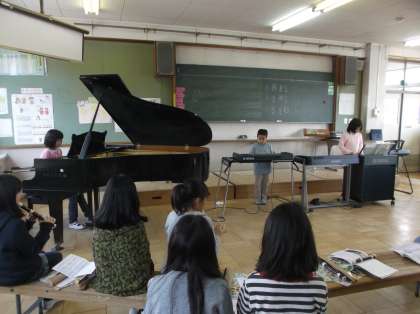 さらに,ピアノ・オルガン・木琴・鉄琴・大太鼓・小太鼓を加えて,合奏もしています。