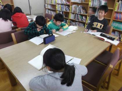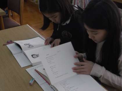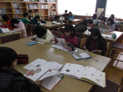 図書室で詩の本を読み,自分のお気に入りの詩を探しノートに書き写しました。