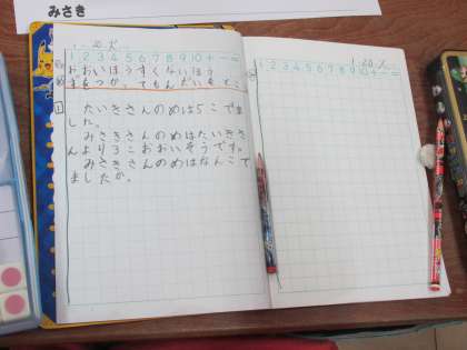 1年生は,数図ブロックを使って考えますが,今回は,それを図にかき,他の人に説明します。