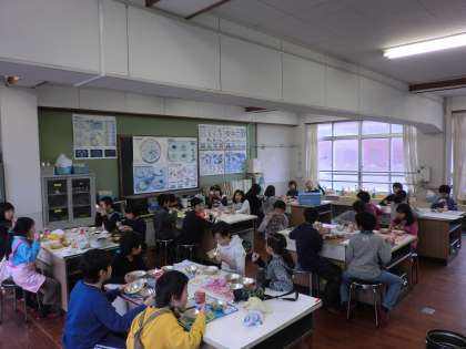 給食も家庭科室で食べました。