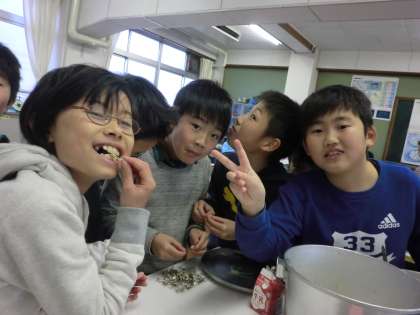 おいしかったようで,最後にみんなでむしゃむしゃ!かわいい光景でした♪
