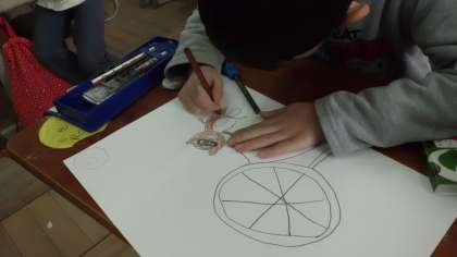 国語「たぬきの糸車」の学習では,自分の好きな場面を選んで,その場面の紙芝居を作っていきます。たぬきやおかみさんの気持ちを考える学習を通して,登場人物への愛着がわいてきたのか,みんなかわいらしく丁寧に描いています。