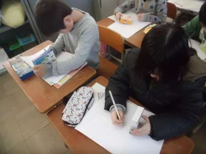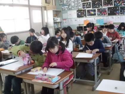 今日の算数は,身の回りの箱はどんな形をしているか,箱の面を紙に写しとって調べました。