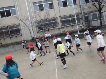 ボール運動の一つとして,ドッジボールをしました。