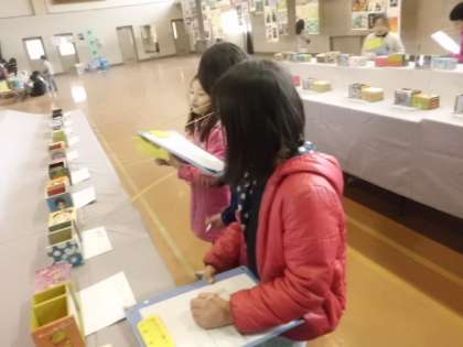 今日から2日間,体育館にて校内図工展が開かれています。