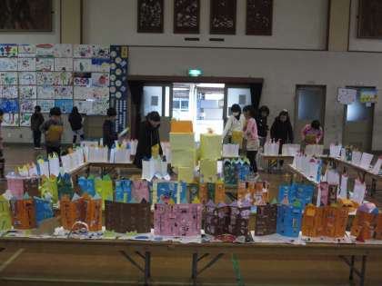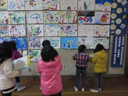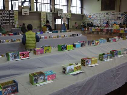 砂川小学校では,17日・18日と体育館で図工展が開かれています。1年生〜6年生・わかば学級・寺子屋砂川,そして支部巡回展の素敵な作品が展示されています。子どもたちは,工夫している所や参考にしたい所などを見つけながら鑑賞していました。四年生のコリントゲームでは,実際に触らせてもらい,楽しみながら鑑賞していました。