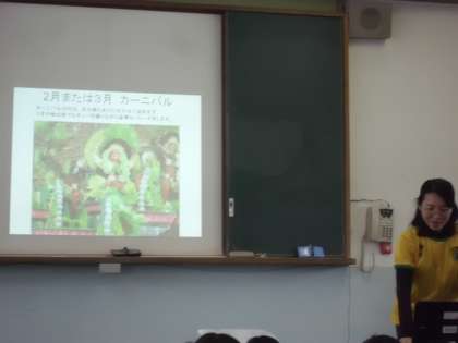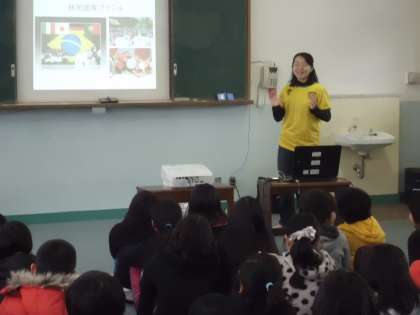 今日は,国際理解教育の一環で,日系ブラジル人の方をゲストティーチャにお招きし,ブラジルの文化や習慣,言葉や遊びなどを教えていただきました。