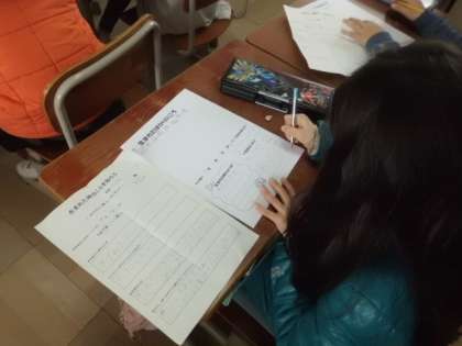 生活では,この前お家の人にインタビューしてきたことをまとめる学習をしています。