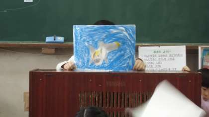 国語「たぬきの糸車」で作った紙しばいの発表会をしました。たぬきやおかみさんのセリフを声を変えて読んだり,教科書には書いていないセリフを加えたり,工夫して読んでいました。