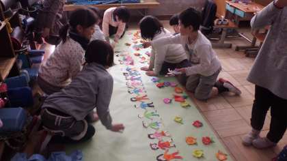 6年生を送る会に向けて,準備をしています。「6年生に喜んでもらいたいな!」という思いを持って,丁寧に作っています。