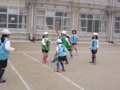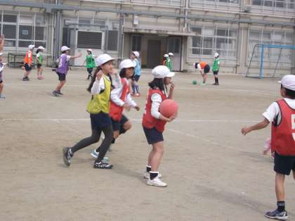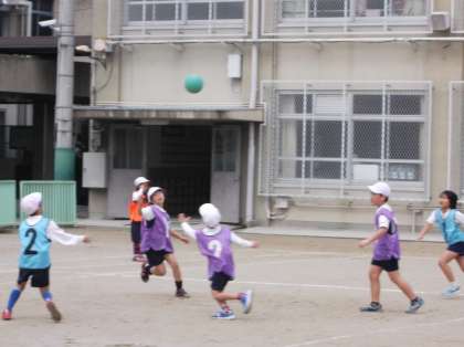 サッカーの学習を終え,エンドボールに取り組んでいます。