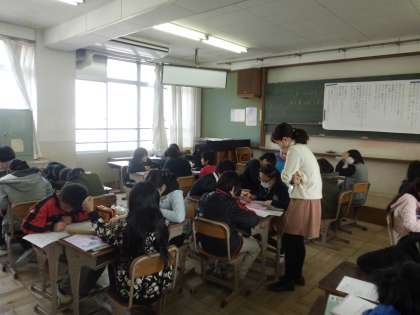 今日は,歌の歌詞をじっくりと読み深め,どんな気持ちで歌うとよいか,歌う強弱はどこを注意したらよいかなどを話し合ってから歌う練習をしました。