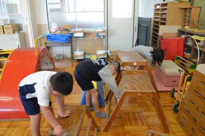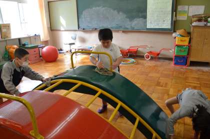 旧プレイルームに置かれていた様々な器具を今のプレイルームに運び出しました。