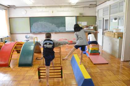 掃除の後は新たな器具を並べて,サーキットトレーニングのようなことをしました。