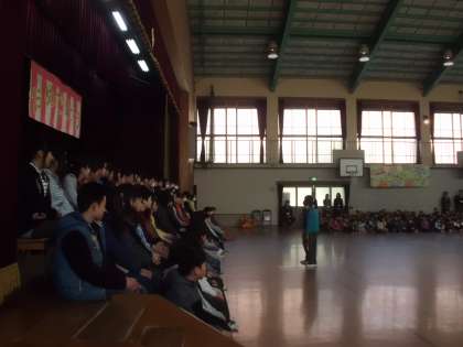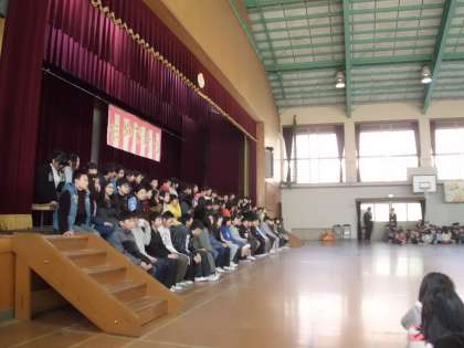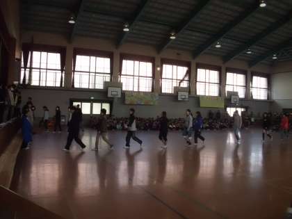 今日は6年生を送る会があり,1年生から5年生による心のこもったプレゼントをたくさんいただきました。
