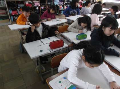 運動会やマラソン大会,遠足,学芸会,七輪の体験など,「どんなことがあったかな…。」と,思い出しながら楽しくかいています。