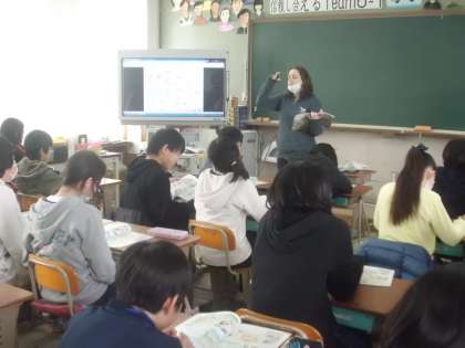 今日は「桃太郎」のお話を,英語で聞いたり,簡単な会話文を教えてもらったりしました。