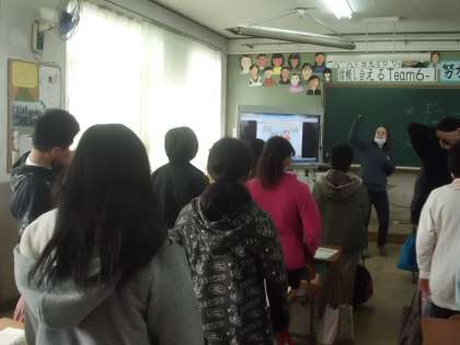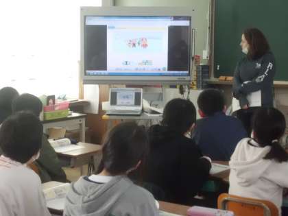 今日で小学校での外国語活動の授業は終わりです。1年間,サラ先生と楽しく学習することができました。英語が好きになった子どももたくさんいます。小学校で学習したことを忘れず,中学校での英語の勉強に活かしてくれると嬉しいです。