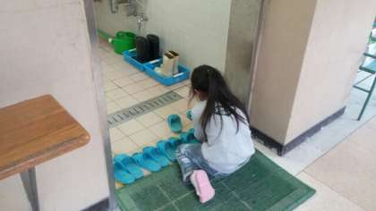 1年生の女の子が,男子トイレのスリッパを揃えてくれていました。