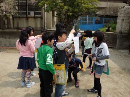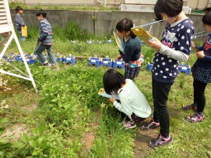 その後,見つけた虫や鳥を観察して記録用紙に記録しました。