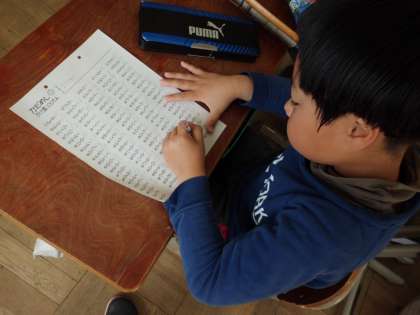 簡単な問題をタイムを計り集中して取り組んでいます。