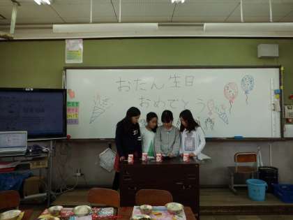 給食の時間に,4月生まれのお誕生会をしました。