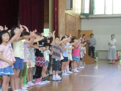 全校のみんなに見てもらったのははじめてでしたが,緊張せずによくがんばっていました。