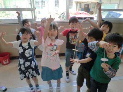 昼休み,今日もらった”ぶんぶんごま”でさっそく遊んでいました。