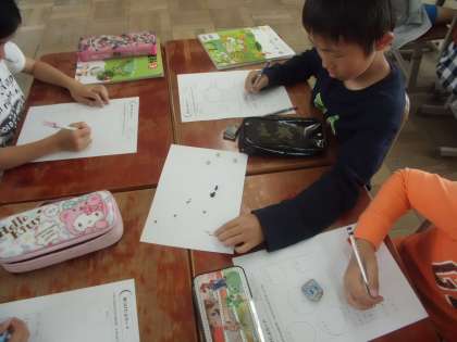 これから植える,ホウセンカ・ダイズ・オクラ・マリーゴールド・ヒマワリをじっくり見て観察します。