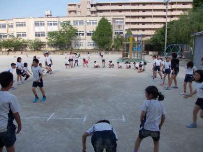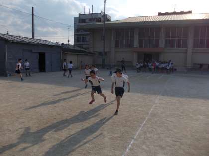 同級生や4年生、6年生たちといっしょにさわやかに汗を流しています。