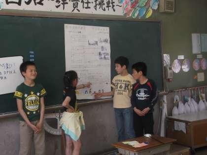調べたことを模造紙にまとめ,発表をしました。調べ学習を通して,知らなかったことをたくさん知ることができました。修学旅行でも震災のことについてしっかり学んできたいと思います。
