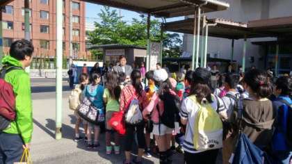 みんな,元気に笑顔で出発です。