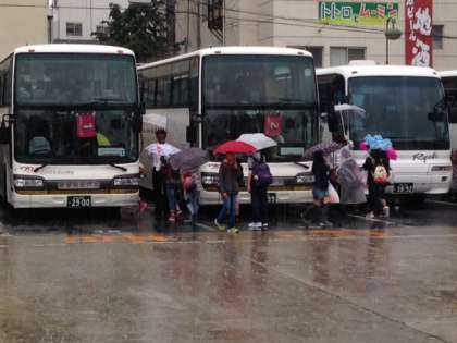 雨のため、予定より早めに倉敷を出発します。