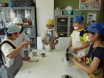 エプロンをつけ,手洗いをして