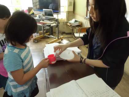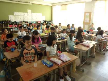 授業が始まる前の時間を有効に使うために,担任の先生が教室に来られる前に,もう机の上にはコップを準備して待っています。