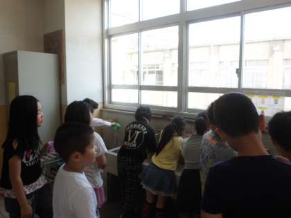 今日からフッ化物洗口が再開しました。久しぶりのフッ化物でしたが,さすが3年生,慣れているのでスムーズにできました。