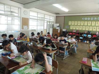 京都の地図帳を配布しました。4年生でも学習に使うので,これから大切に使っていきたいと思います。