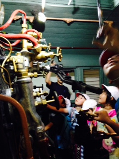 機関車の中に入って車掌さん気分です。