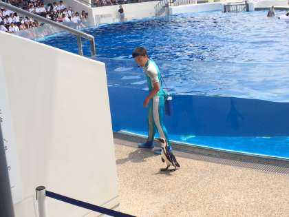 ペンギンの新町がイルカショーに遊びに来てくれました!