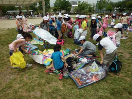 お弁当を食べたら,班でシートやお弁当を片づけて・・・・