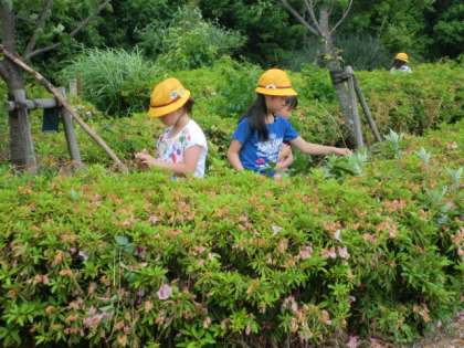 学校から持ってきた大縄をしたり,公園の草花をつんで遊んだりしている子どももいました。