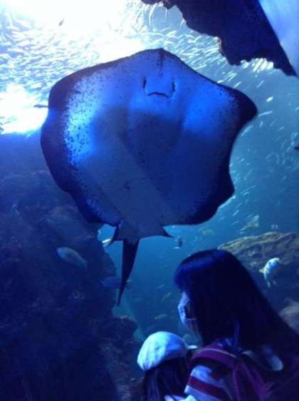 きれいな魚を見ていたら、いつの間にか頭上に大きなエイが!