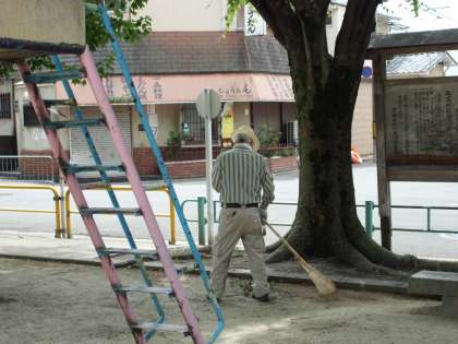 様子を見学していると公園で,掃除をしている方がおられました。